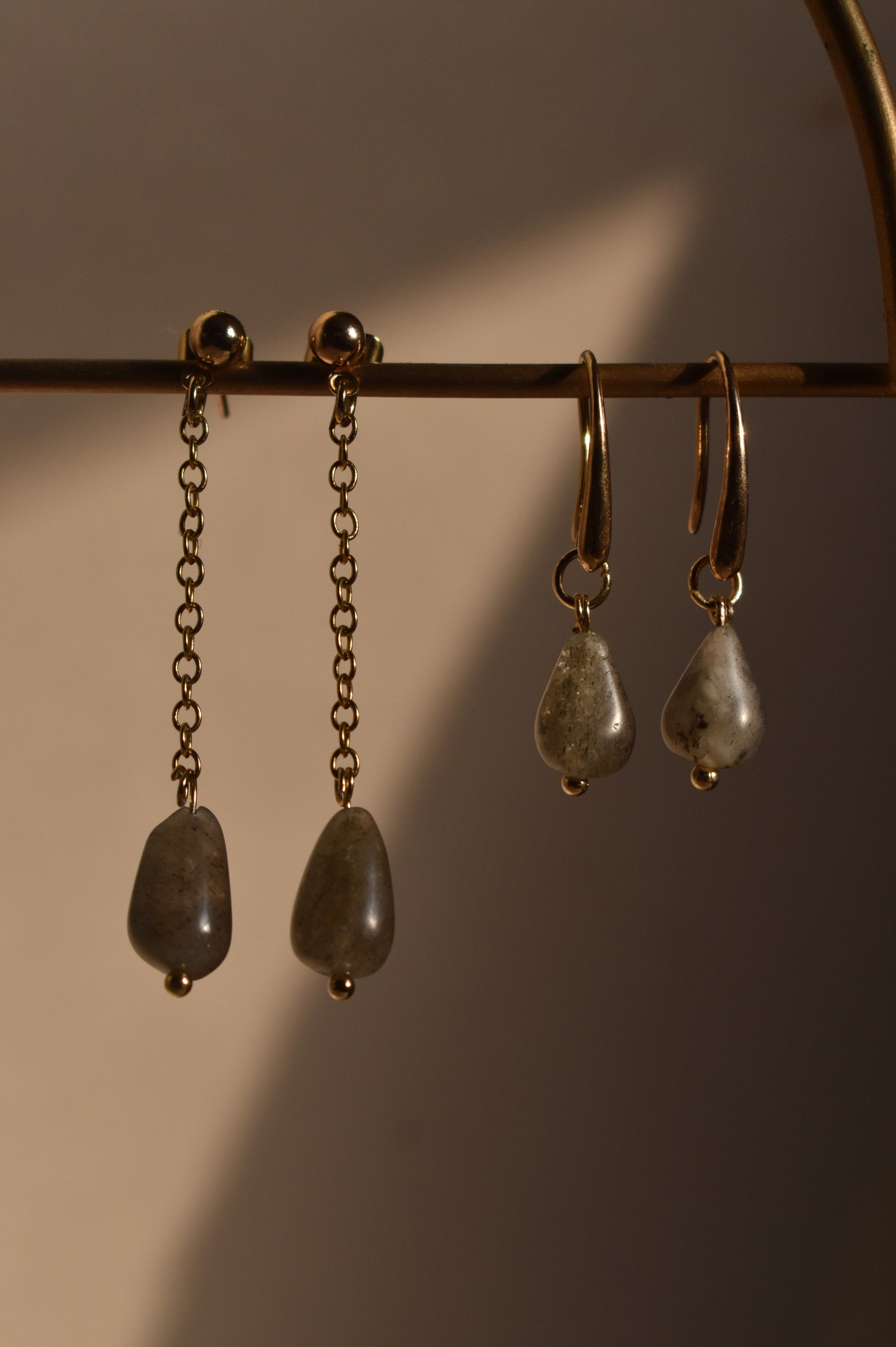 Brinda un toque de elegancia y resguarda tu energía con nuestros aretes de Labradoritas, un poderoso compañero para la vida diaria o una ocasión especial que aleja la energía negativa y protege tu paz interior.
